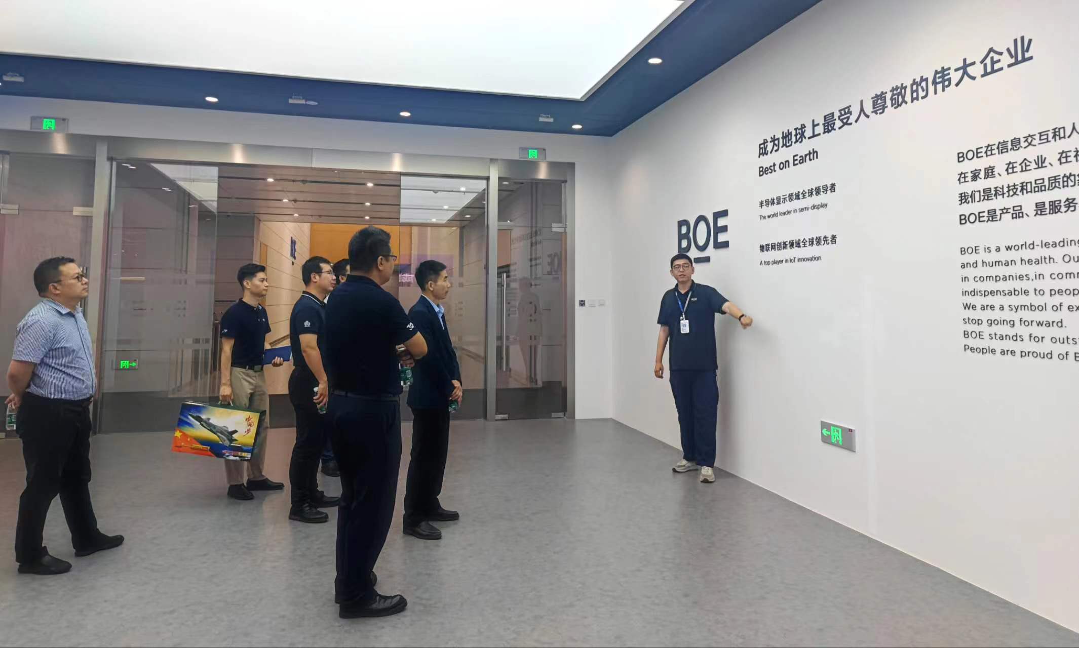 化学学院党委书记刘克松等一行人在京东方全球校园招聘部区域负责人张明我的带领下参观了京东方技术创新中心展厅,详细了解京东方的发展历程和产品研发等情况。此外,还看望校友李晓博、潘亚非、刘臻、王超璐等人,关心校友的工作状态及个人发展情况。
