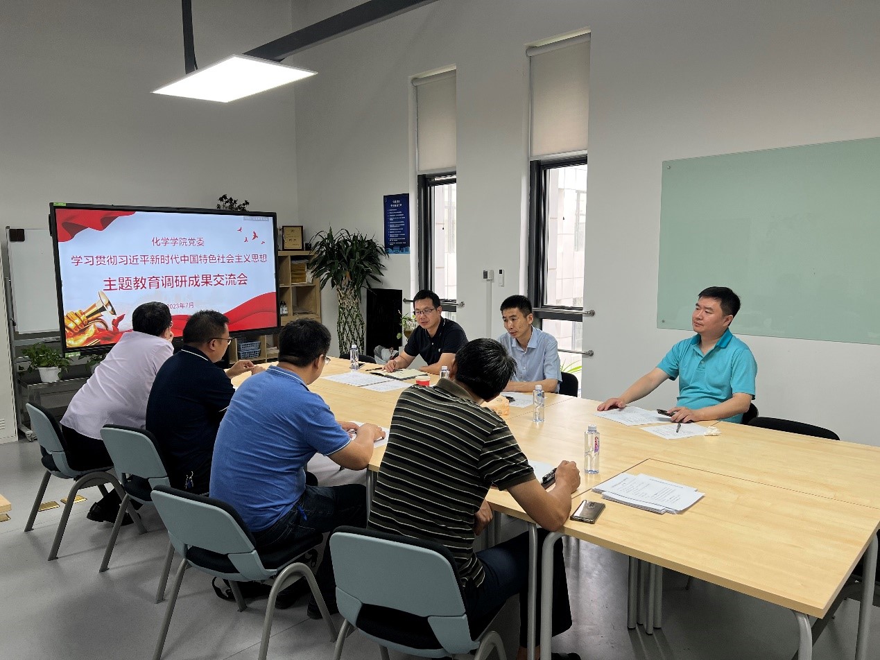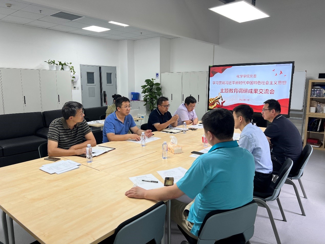 近日,化学学院党委召开学习贯彻习近平新时代中国特色社会主义思想主题教育调研成果交流会,处级领导干部逐一介绍调研成果。党委书记刘克松主持会议,班子成员参会。