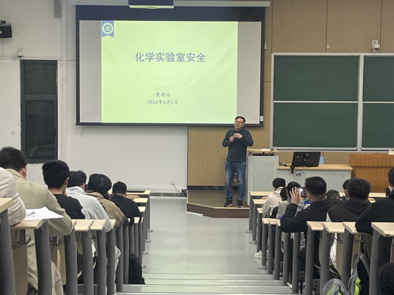 为贯彻落实学校关于实验室安全管理工作的指示要求,提高学生安全防范意识,增强学生对化学实验的应急处置能力,4月1日晚,化学学院于J0-004、J3-311举办实验室安全培训主题讲座。讲座由《化学实验室安全》课程教师鹿现永副教授主讲,化学学院副院长王广胜、实验室安全管理员张智慧老师、专职辅导员王飞扬等出席讲座,学院全体本硕博学生参会。会议由副书记张绍丽主持。